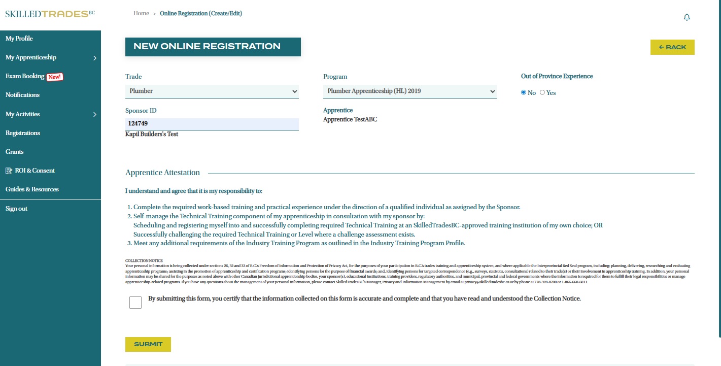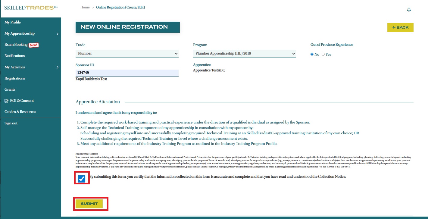 Follow the steps below to submit your apprenticeship registration in the SkilledTradesBC Portal.