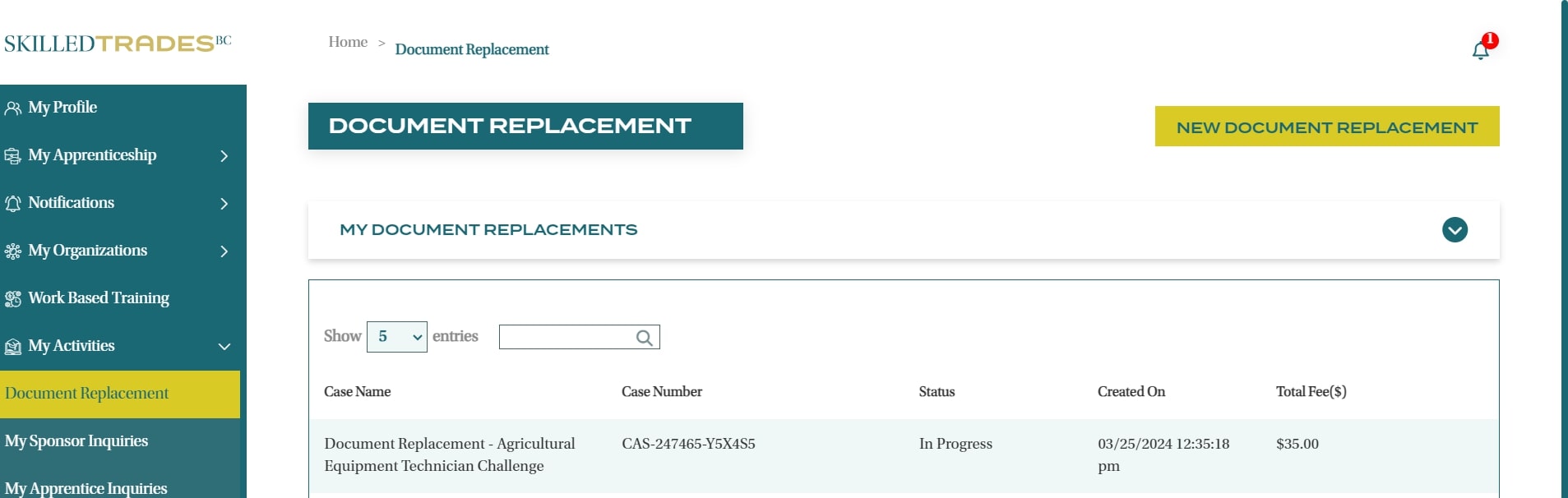 - Upon completing a secure payment, your document replacement request will be successfully submitted. Track the status of your request from the My Documents Replacement section.
