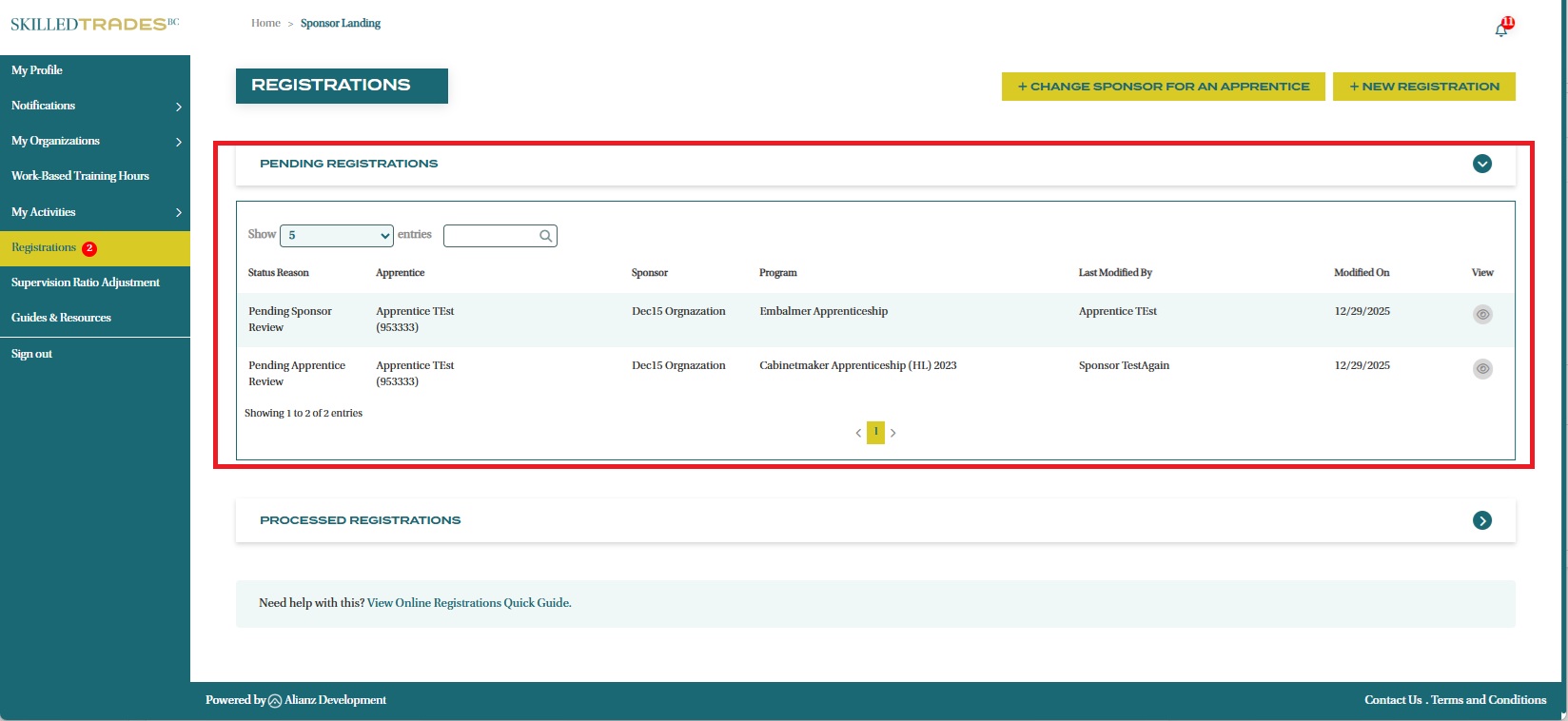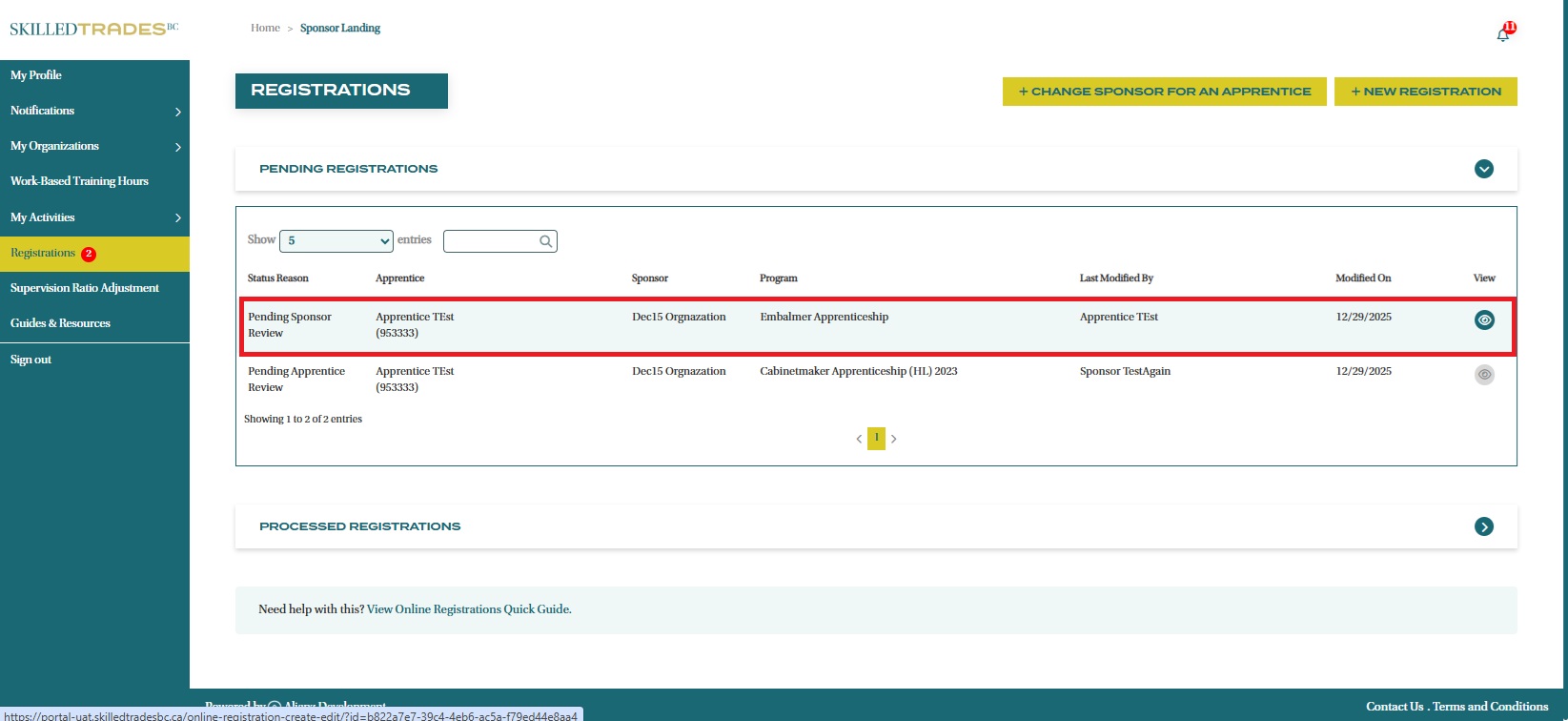 - After logging in, click on “Registrations” from the left navigation menu. Expand the “Pending Registrations” section to view all pending registrations.