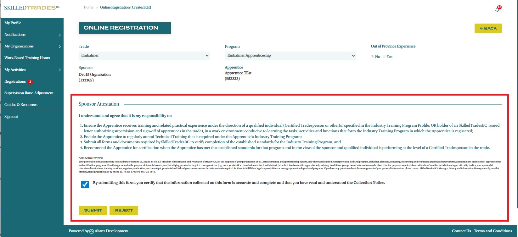 - Review and verify the details submitted by your apprentice and ensure they are accurate. Read the Sponsor Attestation and check the attestation box.